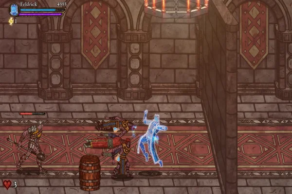 Dicho esto, no hay demasiados gimmicks jugables que cambien las reglas entre fases. Algún que otro peligro ambiental se asoma (trampas, obstáculos que condicionan tu espacio), pero en general el diseño apuesta por la seguridad: arenas cerradas, oleadas a limpiar y avanzar. Es un diseño que funciona porque no rompe la fórmula clásica, pero también se siente algo conservador. Te da un “viaje medieval” entretenido, aunque sin esas sorpresas mecánicas que podrían elevar cada fase a algo más memorable.